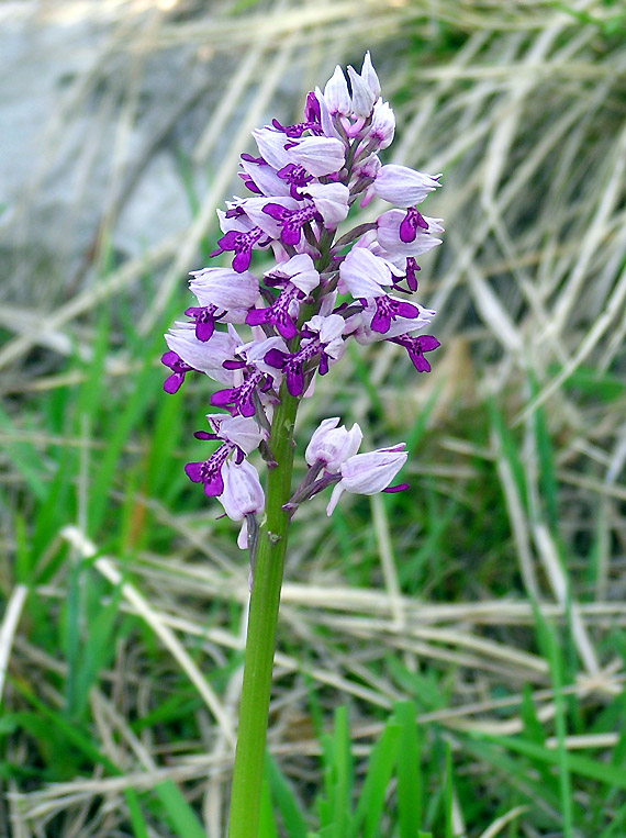 Sinonimi: Orchis rivini Gouan, Orchis cinerea Schrank, Orchis galeata Poir.