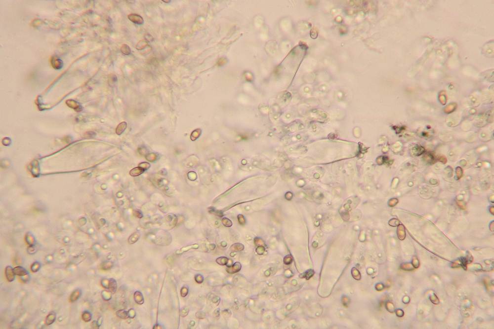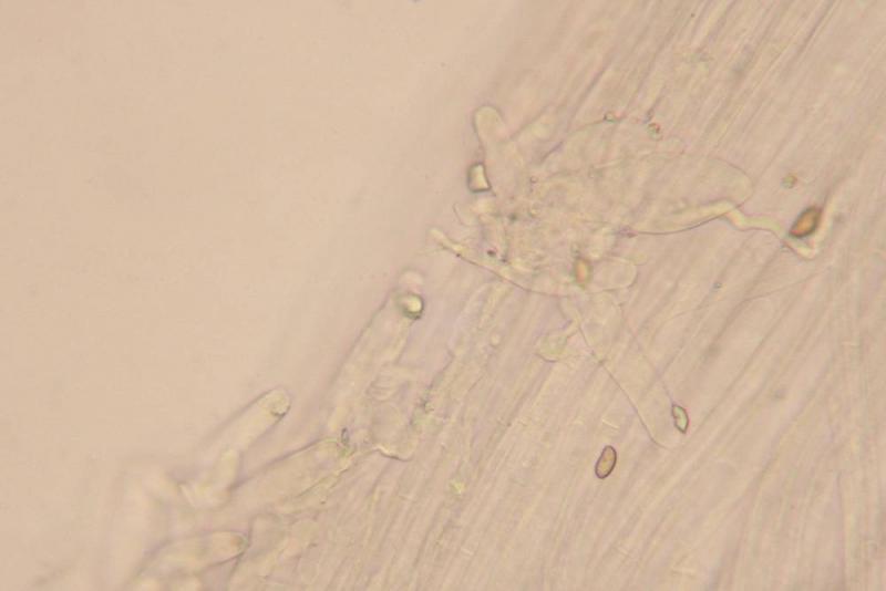 Inocybe splendens R. Heim; Svizzera; Ottobre 2016; Foto di Roberto Cagnoli. Caulocistidi parte bassa del gambo. -