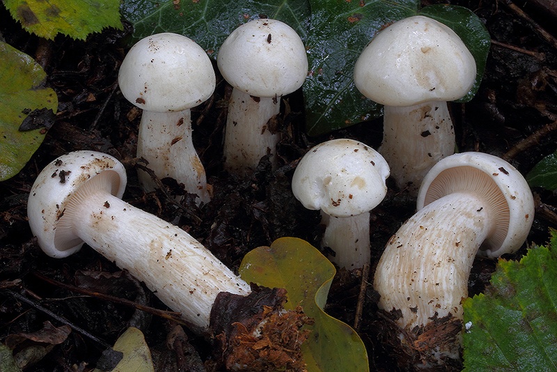 Clitocybe nebularis (Batsch: Fr.) Kummer; Svizzera; Ottobre 2016; Foto di Roberto Cagnoli. Giovani e robusti esemplari della fo. alba. -