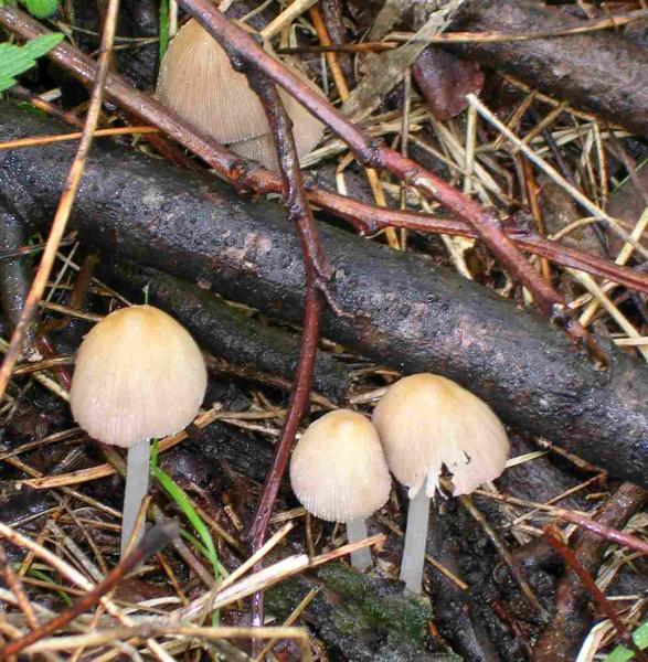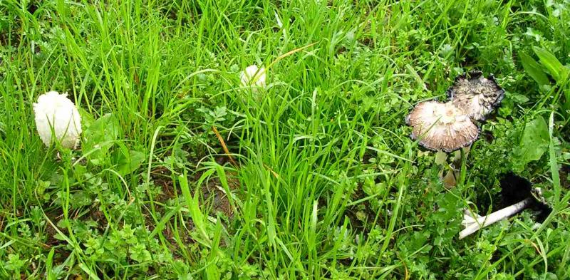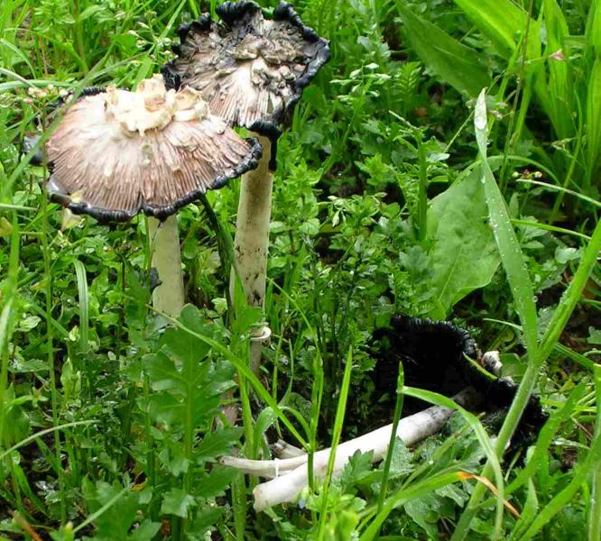 Ciao, trovati ieri, dopo le lunghe piogge, in un prato di Vigliano (BI); le due specie erano a pochi metri di distanza la prima (forse coprinus comatus) al margine tra prato e boschetto di acacia, la seconda (altra specie di coprinus, credo) su rami marciscenti di acacia. Il gruppo: -