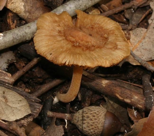 Cortina evidente, glutine sul cappello in quantità (si tirava dietro di tutto!), cappello arancio/mattone, sporata marrone, gambo con ornamenti, su legno di pino bruciato.