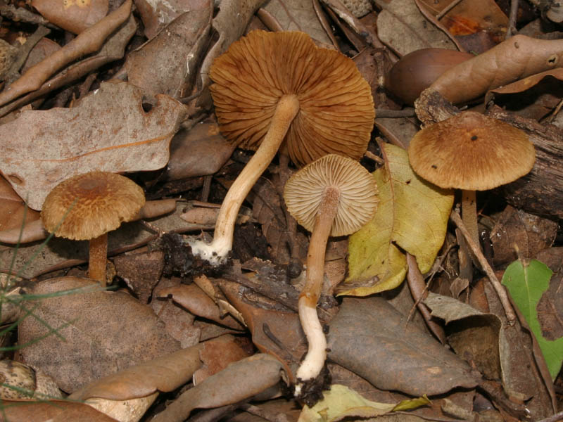 Ho trovato queste Inocybe in un bosco di Lecci, il cappello ha delle squamette a volte quasi arricciate, soprattutto al centro, il cappello è a volte emisferico a volte più conico; le lamelle chiare diventano poi ocra a maturazione; il gambo ha nella parte alta delle piccole fioccosità chiare, odore forte.