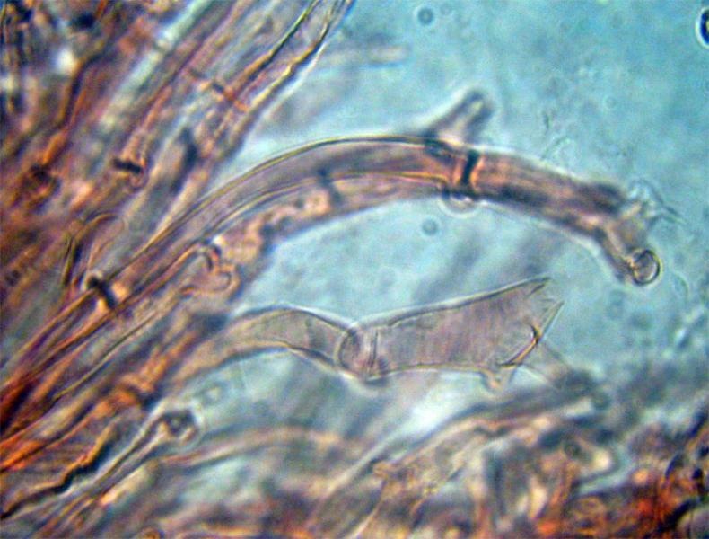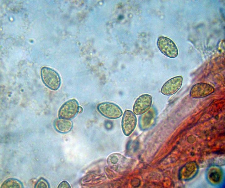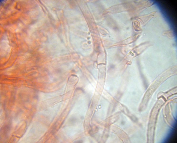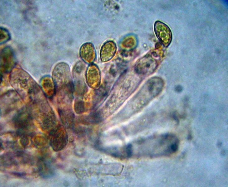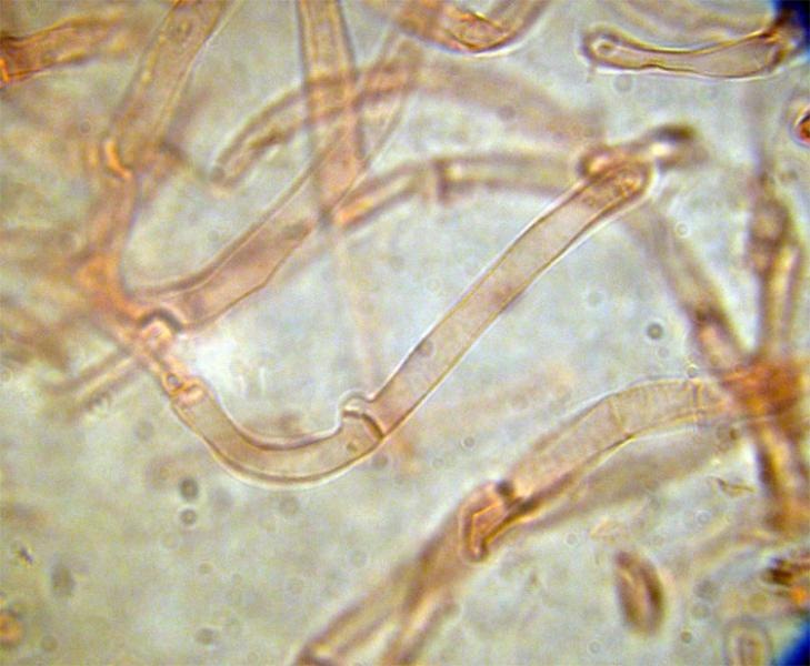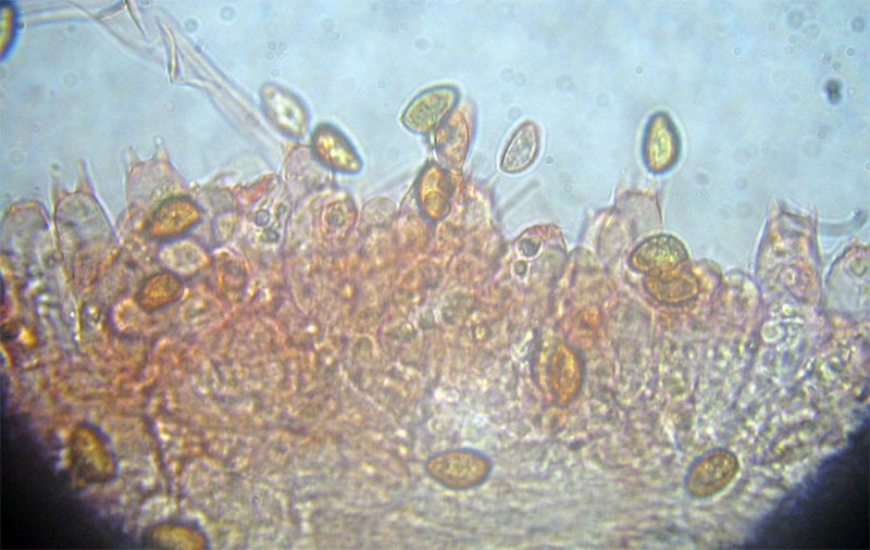 Cortinarius daulnoyae (Quel.) Lucand. Ottobre 2024. Foto di Tomaso Lezzi. 3° CSM di M.te Rufeno e M.te Amiata – 25-27 Ottobre 2024 Reazione della carne con KOH. Spore. Osservazione in KOH, a 1000×. Foto di Pietro Curti. Reazione KOH sulla carne, lamelle con filo più chiaro seghettato, cappello fibrilloso. Foto di Mario Iannotti.- 2 risposte