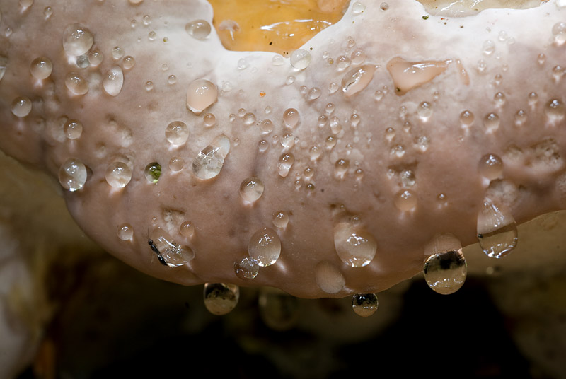 Hydnellum peckii Banker; Foto di Mauro Cittadini. Particolare dello splendore del suo "essudato" rosso-rubino. -