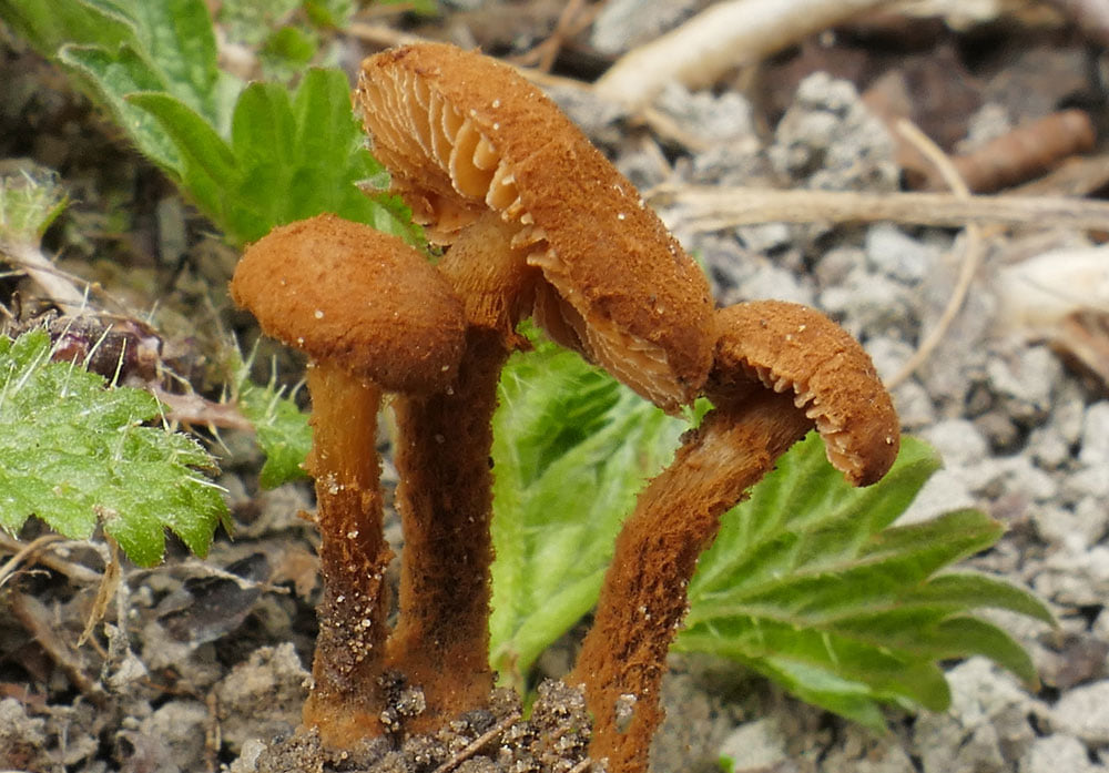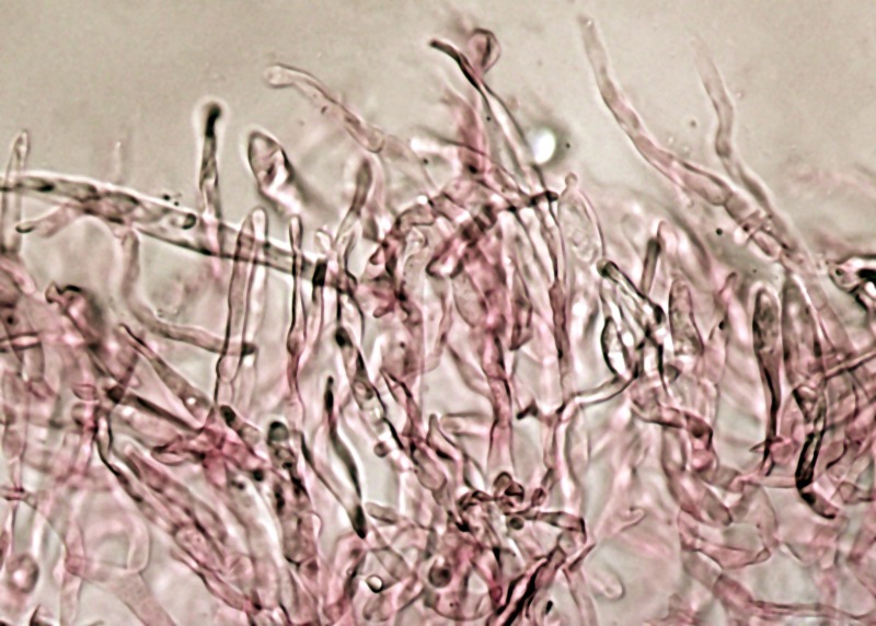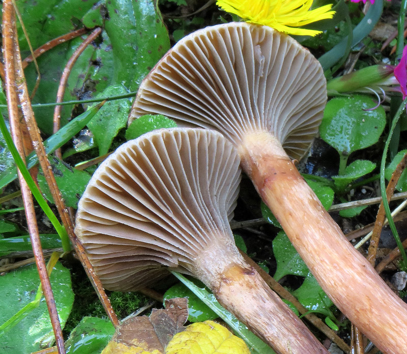 17. Entoloma sericeoides (J.E. Lange) Noordel.; Regione Umbria; Aprile 2022; Foto di Pietro Curti. Imenoforo e gambo. Pileo.