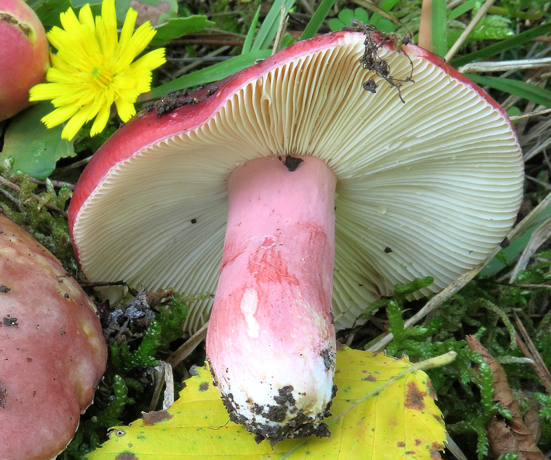 3. Hygrocybe coccinea (Schaeff.: Fr.) Kummer; Regione Marche; Ottobre 2022; Foto di Pietro Curti. Imenoforo con lamelle largamente adnate e tagliente giallo. Cappello rosso ciliegia viscido, carne con sapore dolce.