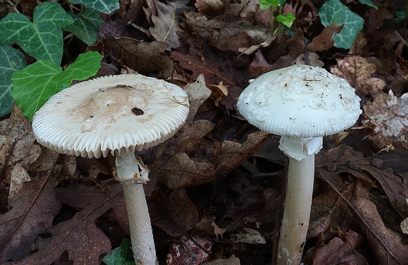 Amanita vaginata (Bull. : Fr.) Vittadini; Regione Toscana; Giugno 2018; foto di Alessandro Francolini. Cappello con toni grigi (grigio cenere, grigio perla, grigio piombo,...) anche sfumato di ocraceo nella zona discale; umbone ampio ma non prominente; margine pileico con evidenti striature regolari; anello assente (o, meglio, dissociato e ridotto a fioccosità che rimangono aderenti alla base del gambo e ricoperti dalla volva; quindi anello non rilevabile sul gambo); gambo slanciato, bianco, liscio o coperto di fini fioccosità concolori; volva fragile ma abbastanza spessa, aderente al piede del gambo e libera all’orlo. Dal (nuovo) Tutto Funghi, Scheda 114, Pag. 222: “Il Gruppo delle Amanita del sottogenere Amanita, sezione Vaginatae, è costituito da un numero di specie molto vasto e ancora non ben delimitato. Tranne rarissimi casi, per una corretta determinazione di questo gruppo è indispensabile l’attenta osservazione microscopica. Sono tutte commestibili di ottimo pregio; si usufruisce del solo cappello ed è obbligatoria una cottura adeguata (15 minuti dal primo bollore, perché sono tossiche da crude). Essendo funghi molto fragili devono essere raccolti con grande delicatezza.” -
