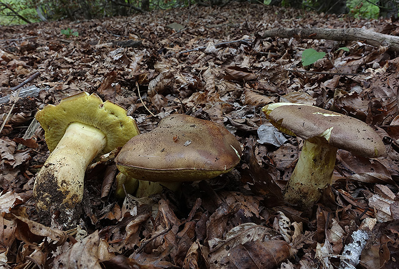Imleria badia (Fr. : Fr.) Vizzini; Regione Toscana; Settembre 2017; foto di Alessandro Francolini. = Boletus badius (Fr. : Fr.) Fr. 1821 = Xerocomus badius (Fr. : Fr.) E.-J. Gilbert 1931 Dal (nuovo) Tutto Funghi, Scheda 200, Pag. 317: “Imleria badia, dalla controversa tassonomia, in passato è stato classificato dai vari Autori ora come Xerocomus [Xerocomus badius (Fr. : Fr.) E.-J. Gilbert, 1931] ora come Boletus [Boletus badius (Fr. : Fr.) Fr., 1821] , presentando caratteristiche morfologiche intermedie tra i due Generi. Tuttavia sulla base di nuovi studi supportati da analisi filogenetiche, è stato recentemente inserito nel nuovo Genere Imleria Vizzini 2014. Imleria badia risulta fino ad ora l’unica rappresentante di questo Genere presente in Italia. Facilmente riconoscibile dalle altre Boletaceae xerocomoidi per la carne bianca leggermente virante a un debole verde-azzurrino passeggero, soprattutto alla giunzione tra cappello e gambo e per la cuticola con colorazione bruna, liscia e untuosetta con tempo piovoso.” *************** Ritrovamenti presso Castagno, con un gambo inaspettatamente e insolitamente cavo: -