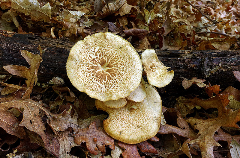 Collybia fusipes (Bull. : Fr.) Quélet; Regione Toscana; Giugno 2017; Foto di Alessandro Francolini. Lignicolo presso latifoglie, quasi sempre Quercia o Castagno, spesso alla base dei tronchi o delle ceppaie (anche interrate). Si riconosce facilmente per il gambo compresso e solcato, fusiforme e radicante, per il crescere di solito cespitoso. I colori sono uniformemente distribuiti su tutto il fungo: dal beige al bruno al rossiccio con macchie rugginose a maturità anche sulle lamelle. Lamelle spaziate (un po’ un’eccezione nel Genere Collybia) e intercalate da numerose lamellule. Alla base di un Castagno -