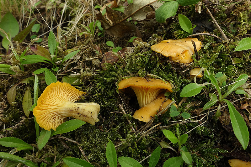 Cantharellus subpruinosus Eyssart. & Buyck.; Regione Toscana; Giugno 2017; Foto di Alessandro Francolini. Dal (nuovo) Tutto Funghi, Scheda 35, Pag. 138: “Cantharellus subpruinosus presenta inizialmente una sorta di pruina biancastra sul cappello e si macchia vistosamente su toni rosso-brunastri dopo manipolazione. Ottimo commestibile. Trova forti estimatori che lo preferiscono nettamente al più nobile Porcino. Viene impiegato in cucina in svariati modi: trifolato, con le lasagne, nel risotto, oppure conservato sottolio o sottaceto. Si presta invece male alla conservazione per essiccamento. Se surgelato crudo tende ad assumere una sgradevole amarescenza: per tale motivo ne consigliamo la surgelazione dopo adeguata, quanto opportuna, precottura.” Una coppia sofferente per la mancanza di umidità: -