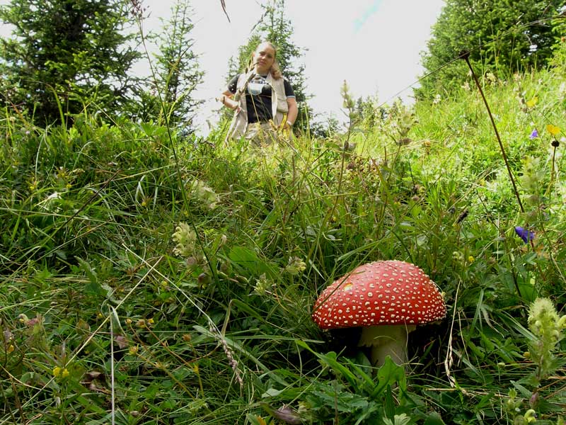 e dopo averla mostrata in tutti i modi possibili ed immaginabili ed in tutte le salse possibili,(è un eufemismo, a nessuno venga in mente di usarla come ingrediente per salse) ve la mostro..........in modo unico e per me, estremamente dolce Amanita muscaria.......ed Erica -