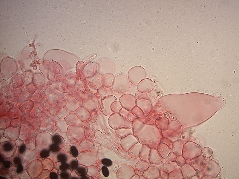 Archivio Micologico Inviato 9 Marzo 2016 Inviato 9 Marzo 2016 Coprinopsis nivea (Pers. : Fr.) Redhead, Vilgalys & Moncalvo 2001 Tassonomia Divisione Basidiomycota Classe Agaricomycetes Ordine Agaricales Famiglia Psathyrellaceae Sinonimi Coprinus niveus (Pers. : Fr.) Fr. 1838 Coprinus latisporus P.D. Orton 1972 Note tassonomiche Gli studi filogenetici condotti da HOPPLE & VILGALYS, 1994; 1999; JOHNSON, 1999 hanno dimostrato che le specie appartenenti al genere Coprinus non sono monofiletiche. Ulteriori studi sono stati eseguiti da JOHNSON & VILGALYS, 1998; HOPPLE & VILGALYS, 1999; MONCALVO et al., 2000; 2002, che hanno confermato la stretta vicinanza alla Famiglia Agaricaceae di Coprinus comatus (O.F. Müller : Fr.) Pers., ed altri taxon molto simili, quali, Coprinus sterquilinus (Fr. : Fr.) Fr. e Coprinus spadiceisporus Bogart, e, pertanto, sarebbe stato opportuno ricollocarli in quest’ultima , mentre le altre specie coprinoidi sarebbero filogeneticamente simili a Psathyrella (Fr.) Quél.. Sulla base di queste risultanze si è avuto una vera e propria rivoluzione tassonomica e nomenclaturale (REDHEAD et al., 2001) che ha portato a stabilire che solo il gruppo comatus può rimanere all’interno del Genere Coprinus s.str., mentre le altre specie devono essere segregate in nuovi generi (Parasola Redhead, Vilgalys & Hopple), o anche in vecchi disponibili (Coprinellus P. Karst. e Coprinopsis P. Karst.), che a loro volta devono essere collocati nella nuova famiglia Psathyrellaceae (Singer) Vilgalys, Moncalvo & Redhead. I nuovi Generi sono così caratterizzati: Coprinellus Karst. (cappello con o senza velo; se è presente il velo risulta formato da cellule globose; senza velo abbiamo la presenza di pileocistidi), comprende i taxa delle vecchie subsezioni Micacei, Domestici e Setulosi; Coprinopsis Karst. ha lamelle sempre deliquescenti, (cappello senza pileocistidi ma con velo formato da cellule globose, pileipellis a “cutis” costituita da ife coricate), include le vecchie subsezioni Atramentari, Lanatuli, Alachuani, Nivei e Narcotici; Parasola Redhead et al. ha lamelle non deliquescenti, (cappello quasi sempre privo di pileocistidi e senza velo), la cuticola si presenta solcato-plicata, la pileipellis è di tipo imenoderma, i pleurocistidi sono sempre presenti, trovano collocazione le specie delle vecchie subsezioni Glabri e Auricomi. Etimologia Coprinopsis: deriva dal nome del Genere Coprinus, composto col suffisso opsis (che discende dal greco òpsis = vista, somiglianza). Quindi con il significato di: simile ad un Coprinus; nivea: dal latino niveus, a, um = niveo, candido, riferito al colore del velo che ricopre il cappello nel primordio. Cappello Cappello ovoide-allungato nei giovani esemplari, appare ricoperto da un velo candido di consistenza farinosa, fioccosa, poi scompare rapidamente con la crescita ed a maturità la superficie è glabra, completamente appianata, di colore grigiastro, frastagliata, con il margine rialzato. Imenoforo Le lamelle sono libere, grigiastre, molto velocemente nerastre, deliquescenti. Gambo Il gambo è cilindrico, bianco, fioccoso, attenuato verso il cappello, tende ad ingrossare verso la base, poi invecchiando diventa glabro soprattutto all’apice e con tonalità grigiastre. Carne La carne è scarsa, grigio-nerastra, odore nullo. Habitat Cresce su sterco di equini e bovini, abbastanza comune. Microscopia Spore, 13,8-17,8 × 9,1-12,9 µm, Q = 1,2-1,7; Qm = 1,4, da subglobose o largamente ellissoidali a citriformi, talvolta submitriformi in proiezione frontale, con poro germinativo centrale o leggermente eccentrico, apicolo ben evidente. Basidi tetrasporici. Cheilocistidi subovoidali, utriformi, 48-91,8 × 26,4-43,7 µm. Pleurocistidi simili ai cheilocistidi, 149,9-173,7 × 67,2-78,5 µm. Velo generale costituito da cellule globose, collegate da sottili ife, lisce, alcune leggermente incrostate. Commestibilità e tossicità Fungo non commestibile. Specie simili Questa specie è inserita nella sezione Nivei, del Genere Coprinopsis, fa parte di un gruppo di altre 4-5 specie abbastanza simili, non facili da separare, se non si verificano soprattutto gli elementi microscopici differenzianti che le caratterizzano. Ma vediamo nel dettaglio gli elementi che ci aiutano a separarle: Coprinopsis ephemeroides (DC. : Fr.) G. Moreno, l’unico della sezione Nivei munito di anello fragile, più o meno persistente, qualche volta posizionato alla base del gambo quasi a simulare una pseudovolva; Coprinopsis pseudonivea (Bender & Uljé) Redhead, Vilgalys & Moncalvo, è un fungo di medie dimensioni, con il cappello dal bianco al marrone, da giovane ricoperto da un velo fioccoso di colore rosato, ha le spore mediamente più piccole 9-14 × 7,5-11,5 µm; Coprinopsis cordispora (T. Gibbs) Watling & M.J. Richardson, fungo di piccole dimensioni, il cappello fino a 1 cm di diametro, dapprima marrone, poi grigio, con al centro una papilla di colore giallo-ocra. Dal punto di vista microscopico le spore misurano 6,1-7,8 × 6,1-6,9 μm; il velo è formato da cellule globose ma anche cilindriche, collegate a catena; Coprinopsis poliomalla (Romagn.) Doveri, Granito & Lunghini, da giovane il cappello ha una forma subcilindrica, simile ad una ghianda, coperto da un velo bianco-grigiastro, poi ocra tenue, leggermente lanuginoso-peloso; spore 7-9,5 × 3,7-5,5 μm, il velo è costituito da cellule globose, subglobose con frammiste catene ramificate di cellule allungate; Coprinopsis pseudocortinata (Locq. ex Cacialli, Caroti & Doveri) Doveri, Granito & Lunghini, funghi di piccole dimensioni, il cappello da giovane è subgloboso, ricoperto da un velo fioccoso, granuloso, da biancastro a ocra pallido, a maturità raggiunge i 7-10 mm di diametro, con il margine che assume una forma di stella; spore (5.5-) 7-7.5 (-9) × 3,5-4,5 µm, velo con cellule globose, da ialine a marrone, sono presenti catene di cellule cilindriche, con terminali fusiformi, i cheilocistidi sono solo di forma utriforme. 