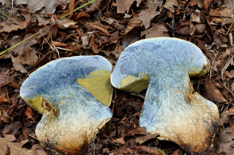 Archivio Micologico Inviato 7 Marzo 2016 Inviato 7 Marzo 2016 Caloboletus radicans (Pers. : Fr.) Vizzini 2014 Tassonomia Divisione Basidiomycota Classe Agaricomycetes Ordine Boletales Famiglia Boletaceae Nome italiano Boleto bianco. Sinonimi Boletus radicans Pers. : Fr. 1801 Boletus albidus Roques 1841 Boletus candicans sensu auct. 2005 Boletus pachypus Fr. : Fr. 1815 Boletus radicans var. pachypus (Fr. : Fr.) Bon 1985 Note nomenclaturali Vizzini (2014) in seguito a studi molecolari ha segregato nel nuovo genere Caloboletus le due specie appartenenti alla vecchia Sez. Calopodes del genere Boletus (Boletus calopus e Boletus radicans). I carpofori appartenenti a questo nuovo genere si contraddistinguono macroscopicamente per i pori di colore giallo vivo e per il sapore amaro della carne. Etimologia Dal latino radicans = radicante, per la base Cappello 5-25 cm, carnoso, emisferico e poi convesso; cuticola finemente vellutata, asciutta, di colore variabile da bianco a grigio pallido-crema, con orlo lungamente involuto e disteso in vecchiaia. Tubuli e pori Lunghi, adnati, giallo citrino nel giovane poi verdognoli e infine olivastri, azzurro-blu al taglio; pori piccoli, rotondi, concolori ai tuboli e immediatamente bluastri al tocco. Gambo 6-10 × 3-5 cm, generalmente robusto, tozzo e talvolta obeso, cilindraceo con base allargata e radicante, giallo pallido virante al bluastro alla manipolazione, talvolta presenta delle sfumature rosato-rossastre nella parte superiore, anche di forma anulare; reticolo a maglie molto fini, concolore al fondo, limitato alla parte superiore e talvolta impercettibile. Carne Soda e compatta negli esemplari giovani ma presto molle, biancastra-giallina, talvolta leggermente rosato-rossastra alla base, vira al bluastro in maniera più o meno intensa, molto debole in particolari condizioni climatiche; odore acidulo, di inchiostro, sapore decisamente amaro. Habitat Non ovunque diffuso, cresce nei boschi caldi, in genere associato a Quercus ma talvolta in presenza di Fagus e Castanea e rappresenta uno dei primi boleti della stagione autunnale. Microscopia Bruno olivastre in massa, ellissoidali, 10-15 × 4,5-6 µm. Commestibilità o Tossicità Non commestibile per il sapore molto amaro. Osservazioni Rappresenta uno dei pochi boleti con carne amara. Specie simili Specie di facile determinazione per il sapore amaro, i pori giallo citrino viranti al bluastro e il cappello sempre biancastro, difficilmente confondibile con il Caloboletus calopus (Pers.: Fr.) Vizzini = Boletus calopus (Pers.) Fr., che presenta un reticolo a maglie allungate, colorazioni rossastre del gambo molto più estese e marcate e colorazione del cappello lungamente grigiastra. La f. sanguineipes presenta sfumature rosate più o meno diffuse e carne alla base del gambo più marcatamente rossastra, più evidente in sezione e assenza del reticolo. Bibliografia Index Fungorum. Index Fungorum no. 146. [Data di accesso: 06/11/2016]. Scheda di proprietà AMINT realizzata da Giovanni Satta - Approvata e Revisionata dal CLR Micologico di AMINT. Regione Sardegna; Settembre 2005; Foto di Franco Sotgiu.