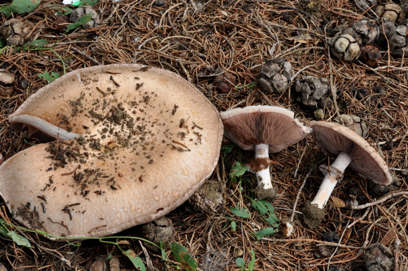 Archivio Micologico Inviato 5 Marzo 2016 Autore Inviato 5 Marzo 2016 Agaricus bisporus (J.E. Lange) Imbach; Regione Umbria; Novembre 2012; Foto di Stefano Rocchi. Rinvenimento effettuato sotto cipressi; cappello caffè-latte, leggermente squamuloso, con bordo frangiato; gambo ingrossato alla base ove vi sono piccole radichette, biancastro con striature brunastre longitudinali; lo stesso è cavo; carne bianca ma tende ad essere rosata nella parte del cappello verso le lamelle e nel gambo; odore fungino (con lieve accenno farinoso nelle lamelle) e sapore buono di nocciole. Agaricus bisporus in natura spesso si presenta in modo piuttosto differente rispetto agli esemplari cresciuti in coltivazione, gli esemplari sono però caratteristici per la forma dell'anello,il margine eccedente e la crescita sotto Cupressus. L'esame microscopico di Felice Di Palma ha confermato la specie per i basidi prevalentemente monosporici, solo qualcuno bisporico, le spore osservate sono di conseguenza di misure piuttosto grandi.