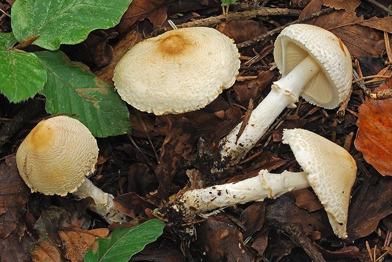 Archivio Micologico Inviato 17 Aprile 2016 Inviato 17 Aprile 2016 Lepiota ignivolvata Bousset & Joss. ex Joss. 1990 Tassonomia Divisione Basidiomycota Classe Agaricomycetes Ordine Agaricales Famiglia Agaricaceae Sinonimi Lepiota ignivolvata Bousset & Joss. 1948 [Nom. inval., Art. 39.1 (Melbourne)] Foto e Descrizioni Caratterizzata da taglia media e habitus relativamente tarchiato; l'anello, inclinato e sdoppiato è formato da cercini dal filo arancio-ruggine, che disegnano delle linee discontinue sul gambo; umbone ben definito e delimitato, dal colore ocra rossiccio. Una ulteriore conferma viene dall'arrossamento alla corrusione soprattutto alla base del gambo, questo arrossamento è tardivo, e può avvenire anche dopo un giorno dalla raccolta. Verificato su questi campioni, che sul campo non mostravano nessun segno di arrossamento e solo la mattina seguente avevano chiari segni di arrossamento. Le specie simili sono Lepiota clypeolaria (Bull. : Fr.) Kumm. con il gambo rivestito da fioccosità biancastre e Lepiota ventriosospora Reid, con il gambo rivestito da fioccosità giallastre. Quasi tutte le altre specie appartenenti al Genere Lepiota possiedono taglia decisamente inferiore e habitus più esile. Specie sospettata di tossicità insufficientemente conosciuta, da sottoporre a nuove indagini e valutazioni. Regione Umbria; Ottobre 2009; Foto e descrizione di Tomaso Lezzi. Sezione.