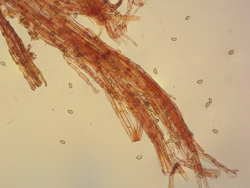 Archivio Micologico Inviato 6 Agosto 2022 Autore Inviato 6 Agosto 2022 Mallocybe terrigena (Fr.) Matheny, Vizzini & Esteve-Rav.; Regione Umbria; Dicembre 2020; Foto di Tomaso Lezzi. Inocybe dal caratteristico gambo coperto di squame rialzate e di un anello nella parte alta. Spore (8,8) 9,4-12,4 (13,8) × (5,6) 5,8-7,2 (7,4) µm; Q = (1,5) 1,52-1,9 (2,0); N = 32; Media = 10,9 × 6,4 µm; Qm = 1,7; ellissoidali, faseoliformi. Cheilocistidi clavati, settati. Pleurocistidi non osservati. Gambo formato da una cutis di ife cilindriche parallele. Spore (8,8) 9,4-12,4 (13,8) × (5,6) 5,8-7,2 (7,4) µm; Q = (1,5) 1,52-1,9 (2,0); N = 32; Media = 10,9 × 6,4 µm; Qm = 1,7; ellissoidali, faseoliformi. Osservazione in rosso Congo, a 400×. Cheilocistidi clavati, settati. Osservazione in rosso Congo, a 400×. Ife del gambo, cilindriche parallele. Osservazione in rosso Congo, a 200×.
