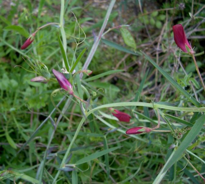 Ospite Inviato 12 Luglio 2006 Inviato 12 Luglio 2006 Lathyrus cicera L. Dal greco lathyros = pisello. Sinonimi: Lathyrus dubius Ten. Lathyrus aegaeus Davidov Cicercula anceps Moench Cicercula cicera (L.) Alef. Lathyrus erythrinus C.Presl Lathyrus purpureus C.Presl Pisum rubrum E.H.L.Krause Varietà: Lathyrus cicera L. var. angustifolius Rouy Lathyrus cicera L. var. latifolius Rouy Nome italiano: Cicerchia cicerchiella Nome inglese: Red vetchling, Red pea SISTEMATICA Regno: Plantae Tipo: Spermatophyta (piante con semi) Sottotipo: Angiospermae (piante con fiori) Classe: Dicotyledones Sottoclasse: Rosidae Ordine: Fabales Famiglia: Fabaceae DESCRIZIONE: Pianta erbacea annuale alta 10-60 cm., con fusto alato, foglie provviste di stipole, con 1 o 2 paia di segmenti lanceolati e con cirro presente, più sviluppato in quelle superiori. I fiori sono isolati, portati da peduncoli lunghi 1-3 cm., con corolla di colore purpureo. I frutti sono dei legumi lunghi 2-4 cm., solcati nella parte dorsale, e contengono 3-5 semi. Forma biologica: T scap Periodo di fioritura: III-VI Altitudine: 0-1000 m. Regioni in cui è presente: FRI VEN TRE LOM PIE LIG EMI TOS MAR UMB LAZ ABR MOL CAM PUG BAS CAL SIC SAR Frequenza al Nord: C Frequenza al Centro: C Frequenza al Sud: C Frequenza nelle Isole: C Corologia: Euri-Medit. Il genere Lathyrus comprende circa 160 specie (annuali o perenni) presenti sia nell'emisfero boreale che in quello australe. Ricordiamo: 1)L. affinis 2)L. alefeldii 3)L. alpestris 4)L. amphicarpos 5)L. angulatus 6)L. annuus 7)L. aphaca 8)L. articulatus 9)L. aureus 10)L. azureus 11)L. basalticus 12)L. bauhinii 13)L. biflorus 14)L. bithynicus 15)L. blepharicarpus 16)L. brownii 17)L. canescens 18)L. cassius 19)L. chloranthus 20)L. chrysanthus 21)L. cicera 22)L. ciliolatus 23)L. cirrhosus 24)L. clymenum 25)L. coccineus 26)L. crassipes 27)L. cusickii 28)L. cyaneus 29)L. davidii 30)L. decaphyllus 31)L. delnorticus 32)L. digitatus 33)L. drummondii 34)L. elodes 35)L. erectus 36)L. filiformis 37)L. floribundus 38)L. glandulosus 39)L. gloeospermus 40)L. gmelinii 41)L. gorgoni 42)L. graminifolius 43)L. grandiflorus 44)L. grimesii 45)L. heterophyllus 46)L. hierosolymitanus 47)L. hirsutus 48)L. hitchcockianus 49)L. hygrophilus 50)L. incanus 51)L. inconspicuus 52)L. incurvus 53)L. japonicus 54)L. jepsonii 55)L. jordani 56)L. kilimandsharicus 57)L. laetiflorus 58)L. laevigatus 59)L. lanszwertii 60)L. latifolius 61)L. laxiflorus 62)L. leptophyllus 63)L. linifolius 64)L. littoralis 65)L. lusitanicus 66)L. macropus 67)L. magellanicus 68)L. maritimus 69)L. marmoratus 70)L. montanus 71)L. mulkak 72)L. nervosus 73)L. neurolobus 74)L. nevadensis 75)L. niger 76)L. nigrivalvis 77)L. nissolia 78)L. occidentalis 79)L. ochraceus 80)L. ochroleucus 81)L. ochrus 82)L. odoratus 83)L. oreophyllus 84)L. ornatus 85)L. pallescens 86)L. palustris 87)L. pannonicus 88)L. parvifolius 89)L. pisiformis 90)L. polyanthus 91)L. polymorphus 92)L. polyphyllus 93)L. pratensis 94)L. pseudoaphaca 95)L. pseudocicera 96)L. puberulus 97)L. pubescens 98)L. pusillus 99)L. quinquenervius 100)L. rigidus 101)L. roseus 102)L. rotundifolius 103)L. sativus 104)L. saxatilis 105)L. setifolius 106)L. spathulatus 107)L. sphaericus 108)L. splendens 109)L. stenophyllus 110)L. stipulaceus 111)L. stipularis 112)L. strictus 113)L. subandinus 114)L. sulphureus 115)L. sylvestris 116)L. szowitsii 117)L. tingitanus 118)L. torreyi 119)L. tremolsianus 120)L. tuberosus 121)L. undulatus 122)L. variegatus 123)L. venetus 124)L. venosus 125)L. vernus 126)L. vestitus 127)L. vinealis 128)L. watsonii In Italia sono presenti le seguenti specie: 1)Lathyrus amphicarpos L. (Cicerchia con 4 ali) - Forma biol.: T scap - Fiorit.: III-IV - Diffus.: I 2)Lathyrus angulatus L. (Cicerchia angolosa) - Forma biol.: T scap - Fiorit.: V-VI - Diffus.: NCSI 3)Lathyrus annuus L. (Cicerchia pallida) - Forma biol.: T scap - Fiorit.: III-VI - Diffus.: NCSI 4)Lathyrus aphaca L. (Cicerchia bastarda) - Forma biol.: T scap - Fiorit.: IV-VI - Diffus.: NCSI 5)Lathyrus articulatus L. (Cicerchia articolata) - Forma biol.: T scap - Fiorit.: IV-VI - Diffus.: NSI 6)Lathyrus cicera L. (Cicerchia cicerchiella) - Forma biol.: T scap - Fiorit.: III-VI - Diffus.: NCSI 7)Lathyrus cirrhosus Ser. (Cicerchia cirrosa) - Forma biol.: H scand - Fiorit.: VI-VIII - Diffus.: I 8)Lathyrus clymenum L. (Cicerchia porporina) - Forma biol.: T scap - Fiorit.: IV-VI - Diffus.: NCSI 9)Lathyrus digitatus (Bieb.) Fiori (Cicerchia digitata) - Forma biol.: G rhiz - Fiorit.: IV-VI - Diffus.: CS 10)Lathyrus filiformis (Lam.) Gay (Cicerchia filiforme) - Forma biol.: H caesp - Fiorit.: IV-VII - Diffus.: N 11)Lathyrus gorgoni Parl. (Cicerchia gorgonio) - Forma biol.: T scap - Fiorit.: IV-VI - Diffus.: I 12)Lathyrus grandiflorus S. et S. (Cicerchia a foglie grandi) - Forma biol.: G rhiz - Fiorit.: IV-VII - Diffus.: SI 13)Lathyrus heterophyllus L. (Cicerchia a foglie variate) - Forma biol.: H scand - Fiorit.: VI-VIII - Diffus.: NI 14)Lathyrus hirsutus L. (Cicerchia pelosa) - Forma biol.: T scap - Fiorit.: IV-VII - Diffus.: NCSI 15)Lathyrus inconspicuus L. (Cicerchia a fiore piccolo) - Forma biol.: T scap - Fiorit.: IV-VI - Diffus.: NCSI 16)Lathyrus jordani (Ten.) Ces. Pass. et Gib. (Cicerchia di Giordano) - Forma biol.: G rhiz - Fiorit.: V-VI - Diffus.: SI 17)Lathyrus latifolius L. (Cicerchia a foglie larghe) - Forma biol.: H scand - Fiorit.: V-VIII - Diffus.: NCSI 18)Lathyrus laxiflorus (Desf.) Kuntze (Cicerchia laxiflora) - Forma biol.: H scap - Fiorit.: VI-VIII - Diffus.: I 19)Lathyrus montanus Bernh. (Cicerchia montana) - Forma biol.: G rhiz - Fiorit.: V-VI - Diffus.: NCSI 20)Lathyrus niger (L.) Bernh. (Cicerchia nera) - Forma biol.: G rhiz - Fiorit.: V-VI - Diffus.: NCSI 21)Lathyrus nissolia L. (Cicerchia semplice) - Forma biol.: T scap - Fiorit.: IV-VII - Diffus.: NCSI 22)Lathyrus occidentalis (Fisch. et Mey.) Fritsch (Cicerchia gialla) - Forma biol.: H caesp - Fiorit.: VI-VIII - Diffus.: NC 23)Lathyrus occidentalis (Fisch. et Mey.) Fritsc