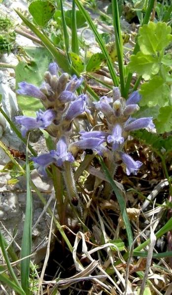 Ospite Inviato 6 Settembre 2006 Inviato 6 Settembre 2006 Orobanche ramosa L. Dal greco Orobanche = "che stringe i legumi", composto di orobos=legume e anchein=soffocare, perché queste piante sono spesso parassite di leguminose. Sinonimi: Kopsia ramosa Dumort Phelypaea ramosa Meyer Nome italiano: Succiamele ramoso Nome inglese: Hemp broomrape Nome spagnolo: Hierba tora Nome francese: Phélipée rameuse Nome tedesco: Hanfwürger Sottospecie Orobanche ramosa L. ssp. mutelii (F.W. Schultz) Coutinho Orobanche ramosa L. ssp. nana (Reuter) Coutinho Orobanche ramosa L. ssp. ramosa SISTEMATICA Regno: Plantae Sottoregno: Tracheobionta - Piante vascolari Superdivisione: Spermatophyta - Piante con semi Divisione: Magnoliophyta (Angiospermae) - Piante con fiori Classe: Magnoliopsida Brongn., Enum. Pl. Mus. Paris: xxvi, 95. 12 Aug 1843 (Magnolineae). Ordine: Scrophulariales Lindl., Nix. Pl.: 20. 17 Sep 1833 (Scrophulales). Famiglia: Orobanchaceae Vent., Tabl. Règne Vég. 2: 292. 5 Mai 1799 (Orobanchoideae), nom. cons. Genere: Orobanche L. (1753) Specie: Orobanche ramosa L. Sp. pl. 2:633. 1753 DESCRIZIONE: Tipo: pianta erbacea annuale, priva di clorofilla Altezza (min./max) 15-30 cm. Fusto: cilindrico, sottile, spesso ingrossato alla base e ramoso Foglie: scarse, lanceolate, lunghe circa 1 cm. Fiori: distanziati, disposti in infiorescenza allungata Corolla: gamopetala, zigomorfa, lunga 9-20 mm., con tubo pallido e fauce blu-violacea Ovario: supero Stami: 4 Calice: ridotto a due lacinie bifide, su entrambi i lati Brattee: oltre al calice c.s., sono anche presenti due bratteole lineari, una per lato, e una brattea centrale Frutto: capsula ovoide, con semi molto piccoli, neri ALTRE INFORMAZIONI: Forma biologica: T par - Terofite parassite (Terofite = Piante erbacee annuali che sopravvivono nella stagione avversa grazie ai semi.) Periodo di fioritura: V-VIII Altitudine: 0/1000 m. Regioni in cui è presente: FRI VEN TRE LOM PIE LIG EMI TOS MAR UMB LAZ ABR MOL CAM PUG BAS CAL SIC SAR Frequenza al Nord: Rara Frequenza al Centro: Comune Frequenza al Sud: Comune Frequenza nelle Isole: Comune Corologia: Paleotemp. Note: E' parassita di diverse specie, sia spontanee (Asteraceae, Lamiaceae, Fabaceae ecc.), sia coltivate (canapa, tabacco, mais, patata) Il genere Orobanche comprende un centinaio di specie erbacee quasi cosmopolite, prive di clorofilla. Ricavano le sostanze nutritizie tramite gli austori che si fissano sulle radici di piante ospiti. In Italia sono presenti: 1) Orobanche aegyptiaca Pers. (Succiamele d'Egitto) - G par - V - (Is.) 2) Orobanche alba Stephan (Succiamele del Serpillo) - G par - IV-VII - It.(S.)C.M.Is. 3) Orobanche alsatica Kirschleger (Succiamele della Cervaria) - G par - VI-VII - It.(S.) 4) Orobanche amethystea Thuill. (Succiamele ametistino) - G par - IV-VII - It.(S.)(C.)(M.)(Is.) 5) Orobanche arenaria Borkh. (Succiamele delle steppe) - G par - V-VII - It.(S.)(C.) 6) Orobanche canescens Presl (Succiamele carnicino) - G par - IV-VI - It.(C.)(M.)(Is.) 7) Orobanche caryophyllacea Sm. (Succiamele garofanato) - G par - IV-VII - It.S.(C.)(M.)Is. 8) Orobanche cernua Loefl. (Succiamele ricurvo) - G par - IV-VI - It.(S.)(M.)(Is.) 9) Orobanche chironii Lojac. (Succiamele dell'Opopanace) - G par - VI-VII - (Is.) 10) Orobanche clausonis Pomel (Succiamele di Clauson) - G par - IV-V - (Is.) 11) Orobanche crenata Forsskal (Succiamele delle Fave) - T scap - IV-VII - It.(S.)C.M.Is. 12) Orobanche densiflora Salzm. (Succiamele maltese) - G par - III-VI - (Is.) 13) Orobanche denudata Moris (Succiamele del Rovo) - G par - VI-VII - (Is.) 14) Orobanche ebuli Huter et Rigo (Succiamele dell'ebbio) - G par - VIII-IX - It.C. 15) Orobanche elatior Sutton (Succiamele della Centaurea) - G par - V-VI - It.(S.)(C.) 16) Orobanche flava Mart. (Succiamele del Petasites) - G par - VII-VIII - It.(S.) 17) Orobanche gracilis Sm. (Succiamele rossastro) - G par - IV-VII - It.S.C.M.Is. 18) Orobanche hederae Duby (Succiamele dell'Edera) - G par - IV-VI - It.(S.)(C.)(M.)(Is.) 19) Orobanche lavandulacea Rchb. (Succiamele della Psoralea) - G par - IV-V - It.(S.)(C.)(M.)(Is.) 20) Orobanche loricata Rchb. (Succiamele della Aspraggine) - G par - IV-VII - It.(S.)(C.)(M.)(Is.) 21) Orobanche lucorum A. Br. (Succiamele del Crespino) - G par - VI-VIII - It.S.(C.)(M.) 22) Orobanche lutea Baumg. (Succiamele prataiolo) - G par - V-VII - It.(S.)(C.)(M.)(Is.) 23) Orobanche minor Sm. (Succiamele minore) - T scap - III-VII - It.S.C.M.Is. 24) Orobanche pallidiflora Wimm . et Grab. 25) Orobanche picridis FW Schultz ex Kock. 26) Orobanche pubescens Durv. (Succiamele tomentoso) - G par - IV-V - It.(C.)(M.)(Is.) 27) Orobanche purpurea Jacq. (Succiamele azzurro) - G par - VI-VIII - It.(S.)(C.)(M.)(Is.) 28) Orobanche ramosa L. (Succiamele ramoso) - G par - V-VIII - It.(S.)C.M.Is. 29) Orobanche ramosa L. ssp. mutelii (F.W. Schultz) Coutinho (Succiamele ramoso) - G par - V-VIII - It.S.C.M.Is. 30) Orobanche ramosa L. ssp. nana (Reuter) Coutinho (Succiamele ramoso) - G par - V-VIII - It.S.C.M.Is. 31) Orobanche ramosa L. ssp. ramosa (Succiamele ramoso) - G par - V-VIII - It.(S.)(C.)(M.)(Is.) 32) Orobanche rapum-genistae Thuill. (Succiamele maggiore) - G par - IV-VII - It.S.C.M.Is. 33) Orobanche rapum-genistae Thuill. ssp. benthamii (Timb.-Lagr.) P. Four. (Succiamele maggiore) - G par - IV-VII - It.(S.)C.M.Is. 34) Orobanche rapum-genistae Thuill. ssp. rapum-genistae (Succiamele maggiore) - G par - IV-VII - It.S.C.M.Is. 35) Orobanche rapum-genistae Thuill. ssp. regens (Loisel.) P. Fourn. (Succiamele maggiore) - G par - IV-VII - (Is.) 36) Orobanche reticulata Wallr. (Succiamele del Cardo) - G par - V-VII - It.(S.)(C.)(M.)(Is.) 37) Orobanche salviae F.Schultz (Succiamele della Salvia) - G par - VI-VIII - It.(S.) 38) Orobanche sanguinea Presl (Succiamele sanguineo) - G par - IV-VI - It.(M.)(Is.) 39) Orobanche schultzii Mutel (Succiamele di Scultz) - G par - III-VI - It.(M.)(Is.) 40) Orobanche teucrii Holandre (Succiamele del Teucrio) - G par - VI-VIII - It.(S.)(