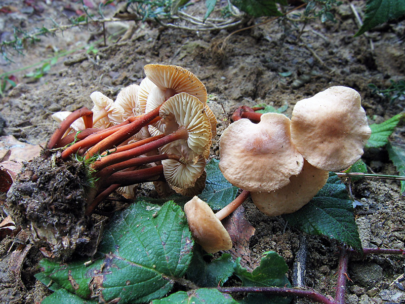 Archivio Micologico Inviato 9 Marzo 2016 Inviato 9 Marzo 2016 Gymnopus erythropus (Pers. : Fr.) Antonín, Halling & Noordel. 1997 Tassonomia Ordine Agaricales Famiglia Omphalotaceae Sinonimi Collybia kuehneriana Singer 1961 Collybia marasmioides (Sacc.) Bresinsky & Stangl 1970 Foto e Descrizioni Specie caratterizzata dal contrasto tra il colore del gambo (rosso-bruno deciso, più chiaro all'apice) e il colore del cappello negli adulti (ocra pallido con riflessi rosati); il simile Gymnopus dryophilus (Bull. : Fr.) Murrill ha invece gambo concolore o quasi al cappello (ocra-aranciato). Note nomenclaturali Specie descritta per la prima volta nell’anno 1801 dal botanico e micologo tedesco Christian Hendrik Persoon, che gli diede l'epiteto di Agaricus erythropus. In seguito, nell'anno 1871 il micologo tedesco Paul Kummer ricombinò la specie in Collybia erythropus, ma il binomio con cui la specie fu ampiamente conosciuta fino ai primi anni 2000 è stato quello creato nell'anno 1961 da Rolf Singer con l'epiteto di Collybia kuehneriana. Attualmente gli studiosi considerano come prioritario il nome scientifico di Gymnopus erythropus, genere in cui la specie vi fu trasferita nell’anno 1997 dai micologi Antonín, Halling e Noordeloos. Bibliografia ANTONÍN, V., HALLING, R.E. & NOORDELOOS, M.E., 1997. Generic concepts within the groups Marasmius and Collybia sensu lato. Mycotaxon 63: 359-368. Regione Toscana; Ottobre 2008; Foto di Alessandro Francolini.