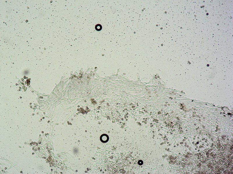 Archivio Micologico Inviato 21 Febbraio 2020 Autore Inviato 21 Febbraio 2020 Entoloma serrulatum (Fr .: Fr.) Hesler; Regione Lazio; Novembre 2019; Foto di Tomaso Lezzi. Cheilocistidi colorati di blu e serrulati, cioè riuniti a gruppi intervallati. Osservazione in L4 a 100×. Cheilocistidi colorati di blu e serrulati, cioè riuniti a gruppi intervallati. Osservazione in L4 a 400×. Pileipellis, ife clavate con pigmento blu scuro disciolto e pigmento marrone disciolto. Osservazione in L4 a 100×. Pileipellis, ife clavate con pigmento blu scuro disciolto e pigmento marrone disciolto. Osservazione in L4 a 400×.