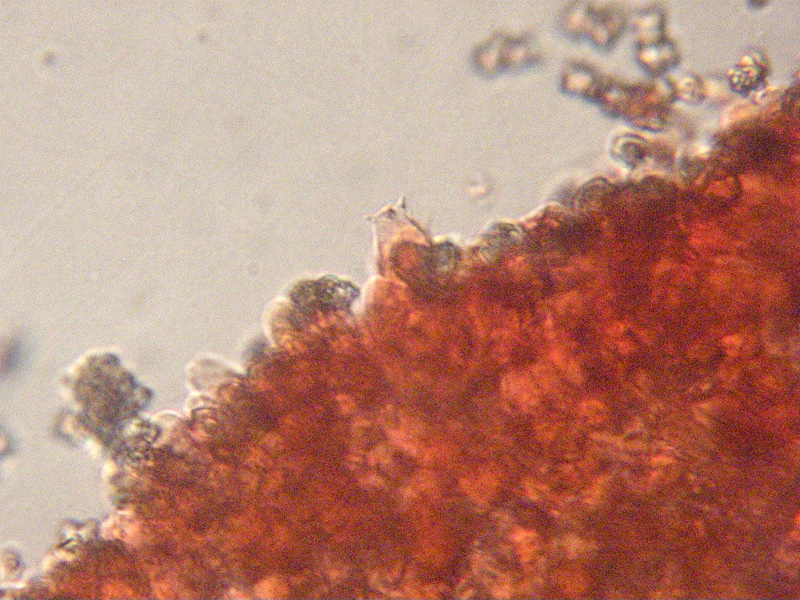 Archivio Micologico Inviato 31 Marzo 2016 Autore Inviato 31 Marzo 2016 Entoloma conferendum (Britz.) Noordel ; Svizzera; Maggio 2015; Foto e microscopia di Roberto Cagnoli. Spore: 7-9 × 7,5-8,5 µm, cubiche. Pileipellis. Basidi tetrasporici.