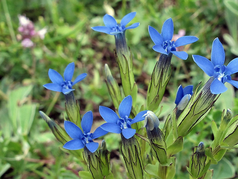 Gruppo Botanico AMINT Inviato 25 Febbraio 2012 Inviato 25 Febbraio 2012 Gentiana nivalis L. Tassonomia Ordine Gentianales Famiglia Gentianaceae Foto e Descrizioni Erbacea annuale glabra, alta 3-15 cm che può avere dimensioni ridottissime oppure può superare l’altezza di 20 cm; fusti pittosto esili, glabri, con toni brunastri, spigolosi, molto ramificati già nella parte basale; foglie ovali-acute con le basali in rosetta, quelle cauline in coppia, dimensioni inferiori a 0,5 × 1 cm; anche i fiori sono molto piccoli con la corolla che supera raramente 12-13 mm di diametro e presenta lobi azzurri e fauce biancastra; fioritura giugno-settembre; il frutto è una capsula ovoide-cilindracea lunga quasi 1 cm; cresce nei prati alpini a quote 1700-2700 m s.l.m. e superiori; in Italia è presente e comune in tutto il Settentrione, mentre è più rara verso il Centro, fino all’Abruzzo compreso. Note: protetta in Emilia Romagna, Liguria, Lombardia, Umbria, Veneto. Regione Trentino-Alto Adige, 1800 m s.l.m.,luglio 2010, foto di Gianni Bonini.