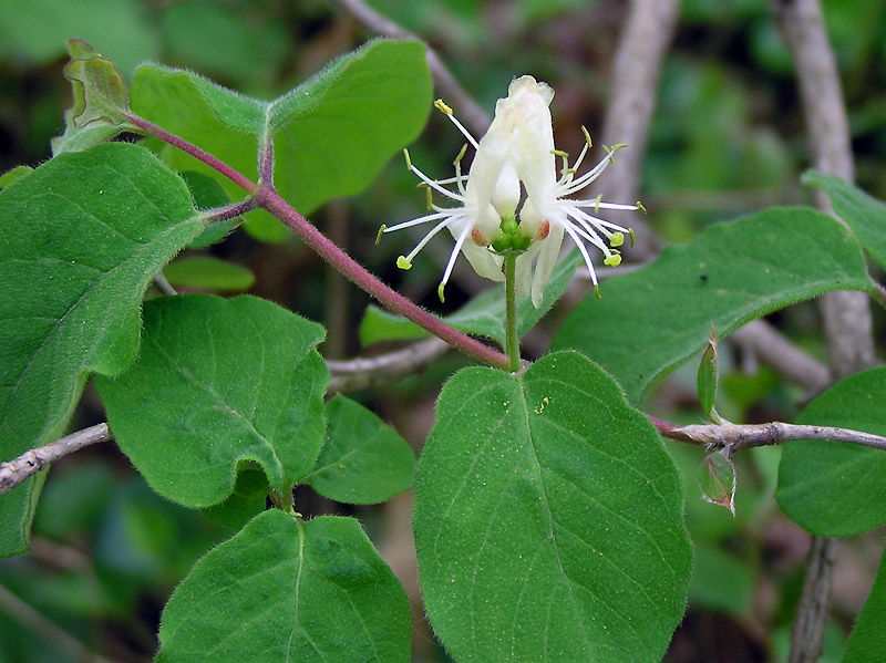 Arbusto alto fino a 2 m, molto ramificato sin dalla base; rami dal legno verdastro e tenero da fresco; corteccia tomentosa, papiracea, dal colore grigiastro con piccole lenticelle puntiformi nere e fenditure longitudinali, ramoscelli giovani finemente pubescenti, verdi o rosso porpora; foglie con corto picciolo, opposte, caduche, mollemente pubescenti soprattutto nella pagina inferiore, dalla forma ovale-acuta o ellittica con margine intero ed evidenti nervature pennate; fiori appaiati su un comune peduncolo eretto e ascellare alla foglia, corolla bilabiata prima bianca poi gialla o rosata, esternamente irsuta o villosa, stami pelosi alla base con antere giallo-verdastre, 1 pistillo verde, il frutto è una bacca rosso lucente sferica con polpa liquida contenente 4-5 piccoli semi; presente in tutto il territorio italiano esclusa la Sardegna, non più segnalata in Campania e Calabria e dubbia in Molise, cresce in boschi chiari di querce e faggi, cespuglieti, predilige luoghi umidi e terreno calcareo, da 300 a 1800 m s.l.m..