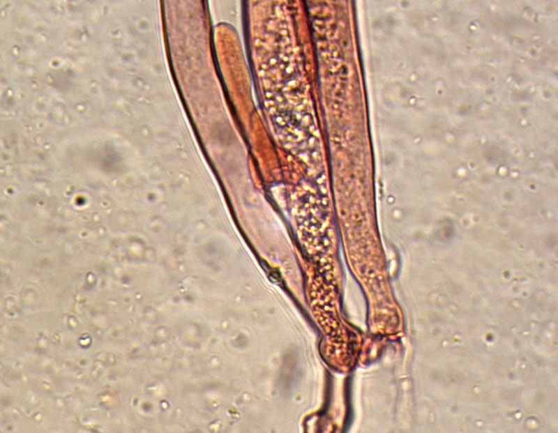Archivio Micologico Inviato 4 Aprile 2016 Autore Inviato 4 Aprile 2016 Helvella crispa (Scop. : Fr.) Fr.; Regione Lombardia; Novembre 2012; Foto e microscopia di Massimo Biraghi. Pianura Bergamasca, Osio Sotto, Giardino privato. MicroscopiaPalizzata di aschi e parafisi. Base aschi. Spore.N° Long. Larg. Q Moy 19,87 12,52 1,59Min 18,11 11,58 1,42Max 21,69 13,62 1,74média 19,77 12,54 1,58Lxl: N= 24 ; dMd; (18,11)18,35-19,595-21,33(21,69) x (11,58)11,72-12,4666666666667-13,24(13,62)Qm= 1,59 Excipulum medullare. Excipulum medullare inferiore ed ectale.
