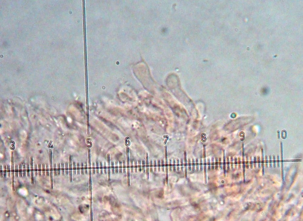 Archivio Micologico Inviato 20 Marzo 2020 Autore Inviato 20 Marzo 2020 Steccherinum ochraceum (Pers. : Fr.) Gray; Regione Umbria; Marzo 2018; Foto e microscopia di Stefano Rocchi. Fungo rinvenuto su legno a terra di Cerro, resupinato, diffuso dal legno alle foglie adiacenti. Imenoforo di colore ocraceo chiaro, costituito da aculei fitti, sottili, alti circa un millimetro, con apici da appuntiti ad arrotondati, taluni biforcati. Margine più o meno netto, leggermente fimbriato, senza rizomorfe, biancastro e un poco feltrato. Sistema ifale dimitico, presenza di GAF; cistidi cilindrici, fortemente incrostati lunghi fino a 100 µm e larghi 5-10 µm; basidi subclavati, tetrasporici, 15-20 × 4-5 µm; spore ellissoidali, lisce, guttulate e inamiloidi 3-4 × 2-3 µm; Qm = 1,3. Steccherinum bourdotii Saliba & A. David, molto simile macroscopicamente si distingue per le spore più grandi e subglobose. Steccherinum robustius (J. Erikss. & S. Lundell) J. Erikss. si differenzia per i colori più accesi, sul rosso-arancio, per il margine nettamente fimbriato e per i cistidi più corti e tendenzialmente più larghi. Sistema ifale dimitico. Osservazione in Rosso Congo a 1000×. Cistidi cilindrici, fortemente incrostati lunghi fino a 100 µm e larghi 5-10 µm. Osservazione in tampone alla glicerina a 400×. Osservazione in Rosso Congo a 400×. Osservazione in Rosso Congo a 1000×. Basidi subclavati, tetrasporici, 15-20 × 4-5 µm. Osservazione in Rosso Congo a 1000×. Spore ellissoidali, lisce, guttulate e inamiloidi 3-4 × 2-3 µm; Qm = 1,3. Osservazione in acqua da sporata a 1000×. Osservazione in Melzer a 1000×.