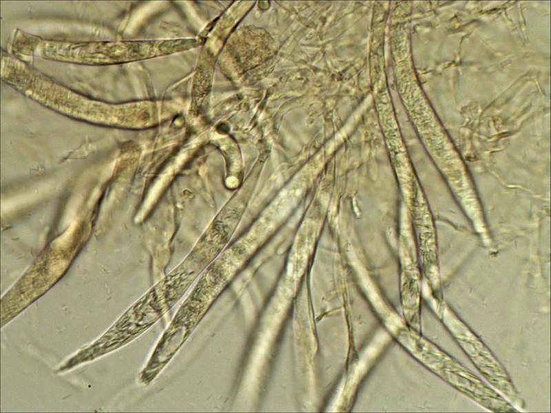 Archivio Micologico Inviato 30 Aprile 2016 Inviato 30 Aprile 2016 Russula farinipes Romell 1893 Tassonomia Divisione Basidiomycota Classe Basidiomycetes Ordine Russulales Famiglia Russulaceae Genere Russula Sottogenere Ingratula Sezione Ingratae Sottosezione Farinipedes Etimologia Dal latino farina = farina e pes = piede, dal gambo farinoso, pruinoso. Cappello Di dimensioni medio-piccole, 3,5-8 cm, all'inizio convesso, poi appianato e infine depresso, scanalato per un lungo tratto verso il margine, cuticola liscia, leggermente viscida a tempo umido, di colore ocra abbastanza uniforme. Lamelle Inizialmente abbastanza fitte, ma ben spaziate a maturità, ad andamento rettileneo, poco fragili e un po' decorrenti al gambo, di colore biancastro anche a maturità, inframmezzate da qualche lamellula. Sporata bianco puro, Ia. Gambo Di forma tendenzialmente cilindrica, inizialmente sodo e pieno, poi cavernoso e infine cavo, bianco, talvolta con qualche macchia gialla verso la base, si tinge di giallo-ocra alla manipolazione, superficie pruinosa per la presenza di caulocistidi. Carne Soda e abbastanza elastica per il genere, bianca, lievemente ingiallente verso la superficie, con odore lieve fruttato e sapore nettamente piccante. Reazioni chimiche Non testate personalmente. Solfato ferroso rosa-arancio, Guaiaco subnullo, KOH negativo. Habitat Specie poco comune, si riviene nei boschi di latifoglie, sopratutto sotto querce a foglia caduca, Fagus sylvatica e Corylus avellana. Microscopia Spore di piccole dimensioni, 6,5-8 × 5,8-6,7 µm ornate da piccole verruche appuntite prive di connessioni. Basidi tetrasporici, clavati. Cistidi imeniali fusiformi larghi 8-10 µm. Pileipellis formata da peli a volte nodosi, dermatocistidi fusiformi e unicellulari larghi fino a 10-11 µm, presenti numerose ife laticifere in profondità. Caulocistidi a contenuto giallo-oro. Commestibilità e tossicità Specie tossica e responsabile di forme gastroenteriche incostanti. Osservazioni Russula farinipes appartiene alla Subsezione Farinipedes che si distingue all'interno della Sezione Ingratae per comprendere specie a sporata bianca di dimensioni contenute, con carne moderatamente elastica e odore gradevole fruttato. L'unica altra specie di questa Subsezione è Russula pallescens Karsten, specie presente in nord Europa che si distingue agevolmente per la taglia ancora più minuta, l'habitat di conifere e le spore con verruche interconnesse da creste. Caratteristica peculiare di questa Russula è la tendenza del gambo a ingiallire alla manipolazione a causa dello schiacciamento dei caulocistidi a contenuto giallo-oro che ne ricoprono l'intera superficie. Specie simili Alcune Russula della Subsezione Foetentinae possono a prima vista apparire simili, tuttavia si possono agevolmente riconoscere per la sporata crema e non bianca. Russula fellea si riconosce per la taglia maggiore e la microscopia totalmente diversa. Russula solaris si distingue per il cappello più marcatamente giallo, la consistenza fragile e la sporata crema carico. Bibliografia SARNARI, M., 1998. Monografia illustrata del Genere Russula in Europa. Tomo Primo. Trento: Ed. AMB. GALLI, R., 2003, 2a Ed. Le Russule. Ed. GalliONSIGLIO, G. & PAPETTI, C., 2009. Atlante dei Funghi d’Italia. Vol. 3. Ed. AMB. ROMAGNESI, H., 1967. Les Russules d'Europe et d'Afrique du Nord. Ed. Bordas. (Parigi) Scheda di proprietà AMINT realizzata da Marco Barbanera - Approvata e Revisionata dal CLR Micologico di AMINT. Regione Lombardia, località Mandello del Lario; Settembre 2015; Foto di Marco Barbanera, microscopia di Angelo Mariani. Crescita sotto latifoglie in un bosco formato principalmente da Ostrya carpinifolia e Corylus avellana. Particolare delle lamelle appena decorrenti e del gambo macchiato di giallastro in seguito a manipolazione. Spore 6,5-8 × 5,8-6,7 µm ornate da verruche isolate. Osservazione in Melzer a 1000×. Basidi clavati tetrasporici. Osservazione in rosso congo a 1000×. Cistidi imeniali fusiformi, larghi fino a 8-10 µm. Osservazione a 1000×. Caulocistidi a contenuto in parte giallo-oro. Osservazione in acqua a 1000×. Ife della pileipellis. Osservazione a 1000×. Dermatocistidi fusiformi e unicellulari, larghi fino a 10-11 µm. Dermatocistidi fusiformi e unicellulari, larghi fino a 10-11 µm. Ife laticifere.