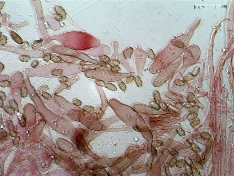 Archivio Micologico Inviato 20 Novembre 2019 Inviato 20 Novembre 2019 Inocybe rennyi (Berk. & Broome) Sacc. 1887 Tassonomia Divisione Basidiomycota Classe Agaricomycetes Ordine Agaricales Famiglia Inocybaceae Genere Inocybe Sottogenere Clypeus Sezione Cortinatae Stirpe Boltoni (spore superiori a 10 µm di lunghezza) Foto e descrizioni Si riconosce dalle specie vicine per le spore presentano un profilo molto allungato e poliedrico, infatti possonono essere subfusiformi, subromboidi, triangolari, angolose con gibbosità poco pronunciate: 10,5 -15(16) × 5,5-7,5 µm (eterosporia), per i cistidi imeniali sublageniformi, subclavati, otriformi, alcuni analoghi a quelli di Inocybe curvipes, con numerosi paracistidi. Caulocistidi assenti. Regione Lombardia, Pianura Bergamasca; Novembre 2016. Foto e microscopia di Massimo Biraghi. Spore 400×. Cistidi imeniali. Caulocistidi.