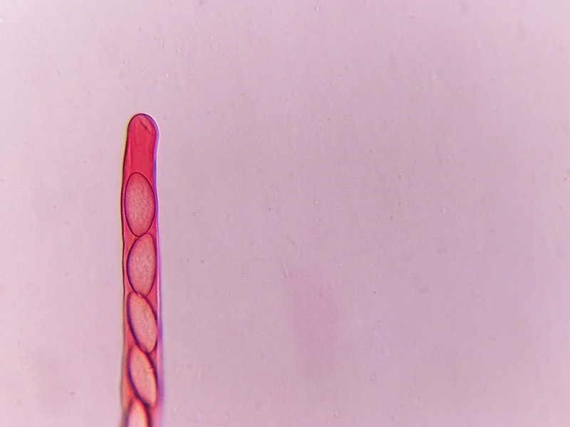 Archivio Micologico Inviato 6 Aprile 2020 Inviato 6 Aprile 2020 Plectania rhytidia (Berk.) Nannf. & Korf 1957 Tassonomia Divisione Ascomycota Classe Pezizomycetes Ordine Pezizales Famiglia Sarcosomataceae Sinonimi Peziza rhytidia Berk 1855 Urnula rhytidia (Berk) Cooke 1889 Sarcosoma rhytidium (Berk) Le Gal 1953 Sarcosoma rhytidia (Berk) Le Gal 1953 Etimologia L'epiteto neolatino Plectania deriva dal sostantivo femminile greco πλεκτάνη [plektàne] = intreccio, attorcigliamento, groviglio. L'epiteto neolatino rhytidia deriva dal sostantivo femminile greco ῥυτίς [rytìs] = crespa, piega, ruga; per il bordo crenulato dell'ascoma. Ascoma Sotto forma di apotecio, da 0,5 a 2,5 cm di diametro, imenoforo grigio-nerastro, liscio, con bordo crenulato, superficie esterna con costolature verticali, ricoperta da una fine peluria. Carne Nerastra e ceracea. Habitat Su residui di legno o radichette di latifoglia, più frequente su Eucaliptus spp. Microscopia Spore (22,4) 23,3-25,2 (25,9) × (10) 10,6-11,6 (12) µm; Q = (2) 2,1-2,3 (2,4); N = 16; Me = 24,2 × 11 µm; Qm = 2,2, elissoidali, con delle striature trasversali, non facilmente visibili. Aschi (365,2) 365,21-459,7 × (13,4) 13,44-16,8 µm; Q = 22,5-34,2; N = 4; Me = 403,2 × 15,4 µm; Qm = 26.6, cilindrici, ottasporici, non amiloidi. Parafisi cilindriche, settate, spesso ramificate e biforcate all'apice. Excipulum medullare formato da una textura intricta di ife cilindriche, con presenza di contenuto giallastro. Excipulum ectale formato da una textura globulosa/angularis, si notano sia peli corti a parete spessa, che peli molto più lunghi con parete meno ispessita, entrambi a volte mostrano delle leggere incrostazioni. Commestibilità e Tossicità Non commestibile. Osservazioni Per osservare meglio le striature presenti nelle spore, è bene effetuare una sporata su vetrino e osservare a secco senza liquidi, per evidenziare le strutture. Specie simili Possiamo differenziare il Genere Plectania dal Genere Pseudoplectania dalla forma sporale, in Plectania troviamo spore elissoidali, mentre in Pseudoplectania le spore sono sferiche. Pseudoplectania nigrella (Pers. : Fr.) Fuckel; è legata a conifere, preferibilmente a Picea spp., e ha spore sferiche. Pseudoplectania melaena (Fr. : Fr.) Sacc.; è legata principalmente ad Abies spp., e ha spore sferiche. Pseudoplectania ericae Donadini; è di habitat mediterraneo legata ad Erica arborea, e ha spore sferiche. Plectania melastoma (Sowerby : Fr.) Fuckel; ha apoteci ricoperti esternamente da granuli incrostati di color arancio e spore leggermente più grandi. Bibliografia CARBONE, M., AGNELLO, C. & BAGLIVO, A., 2010. Appunti su Plectania rhytidia e studio del typus di Urnula platensis. Rivista di Micologia, 53 (2): 119-135. MEDARDI, G., 2006. Atlante fotografico degli Ascomiceti d'Italia. Trento: Ed. AMB. Scheda di proprietà AMINT realizzata da Manuel Atzeni. Approvata e revisionata dal CLR Micologico di AMINT. Regione Lazio; Marzo 2020; Foto di Manuel Atzeni. Aschi e parafisi. Osservazione in Rosso Congo anionico a 400×. Asco. Osservazione in Rosso Congo anionico a 400×. Parafisi. Osservazione in Rosso Congo anionico a 400×. Parafisi. Osservazione in Blu di Toludina a 600×. Spore. Osservazione in acqua a 600×. Excipulum ectale. Osservazione in Rosso Congo ammoniacale a 400× Excipulum medullare. Osservazione in acqua a 200×. Peli dell'excipulum ectale. Osservazione in Rosso Congo a 100× . Peli dell'excipulum ectale. Osservazione in KOH al 30% a 400×. Peli dell'excipulum ectale. Osservazione in Rosso Congo a 400×.