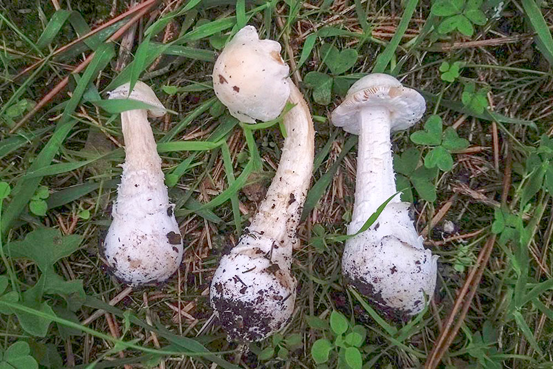 Archivio Micologico Inviato 13 Aprile 2021 Inviato 13 Aprile 2021 Amanita porrinensis Freire & M.L. Castro ex M.L. Castro 1998 Tassonomia Divisione Basidiomycota Classe Agaricomycetes Ordine Agaricales Famiglia Amanitaceae Genere Amanita Sottogenere Amanitina Sezione Phalloideae Sinonimi Amanita porrinensis Freire & M.L. Castro 1987 Note tassonomiche Il primo ritrovamento di questa specie è datato 10 ottobre 1984, ed è stato effettuato nel territorio boschivo del comune di Vigo, in località Madroa, nella provincia di Pontevedra, in Spagna, ai margini di un’area boschiva a coltura mista. Successivamente, nel 1987, i micologi Luis Freire e Maria Luisa Castro ne danno notizia presentandola come “specie nuova” in Anales Jardìn Botànico de Madrid (1987), provvedendo ad una prima descrizione della specie alla quale viene attribuito il binomio Amanita porrinensis Freire & M.L. Castro. Nel contesto viene precisato che “la possibilità che si tratti di un nuovo taxon del genere Amanita è stata confermata dai dottori Moreno e Bon; tuttavia, si rimane in attesa della conferma del dottor Bas, specialista in questo genere” (Freire & Castro 1987]. Tuttavia, la specie viene presentata e descritta in maniera incompleta, priva di numero identificativo e della menzione dell’erbario ove l’holotypus è stato depositato, e quindi non ritenuta valida (nomen invalidum) ai fini della conferma del taxon (Neville & Poumarat, 2004; IF, 2018; MB, 2018]. Per questo motivo, il taxon viene riproposto successivamente da Castro (1998), mediante pubblicazione rispondente ai requisiti richiesti dal Codice di Nomenclatura, su Mykes, Bollettino del Gruppo Micologico Galego, e definitivamente accettato dal mondo scientifico internazionale come Amanita porrinensis Freire & M.L. Castro ex M.L. Castro. Etimologia L'epiteto Amanita deriva dal greco Ἀμανὶτης [Amanitos] = fungo del monte Amano, da Ἄμανος [Amanos] = Amano, catena di monti tra la Cilicia e la Siria, nella Turchia asiatica, dove questo genere sembra fosse abbondante in antichità. L'epiteto porrinensis deriva dalla località Porriño (Presso Vigo, Spagna) e dall'estensione latina -ensis = proveniente da Porriño. Cappello Di piccole dimensioni, 2-8 cm, inizialmente semisferico, campanulato verso la maturazione, spianato-convesso, caratterizzato da un largo umbone centrale molto prominente che gli conferisce spesso un tipico aspetto a “sombrero messicano”; margine sottile, inizialmente liscio poi, verso la maturazione, leggermente striato e incurvato, privo di residui di velo primario (verruche). Cuticola liscia, leggermente viscida a tempo umido, bianca, immutabile, difficilmente separabile. Imenoforo Costituito da lamelle bianche con riflessi rosati, fitte, sublibere al gambo, intervallate da lamellule. Spore in massa bianche. Gambo Bianco, centrale, cilindrico clavato, anche obeso, con bulbo basale subgloboso, con bande sericee trasversali, ricoperto da fiocchetti bianchi macchiati di ocra, fistoloso per tutta la sua lunghezza. Anello Fragile, membranoso e sottile, visibile negli esemplari giovani, poco evidente in quelli maturi dove si presenta sotto forma di lembi aderenti al gambo e sulle lamelle in maniera poco visibile. Volva Bianca, sottile ed aderente al gambo, gracile e poco persistente, si disgrega facilmente a maturazione avanzata ed al tocco. Carne Bianca, sottile nel cappello, spessa nel gambo e di consistenza spugnosa, leggermente imbrunente, alla sezione, verso la base del gambo, inodore. Reazione macrochimiche Reazione gialla sulla cuticola con basi forti (KOH e NaOH). Habitat Tipicamente autunnale. Pino domestico (Pinus pinea), Pino marittimo (Pinus pinaster), Pino d’Aleppo (Pinus halepensis) Castagno (Castanea sativa), Leccio (Quercus ilex), Roverella (Quercus pubescens), con presenza di macchia mediterranea con predominanza di Erica, Cisto, Corbezzolo e Ginestra. Commestibilità e tossicità Specie velenosa mortale, come le altre della sezione Phalloideae: Amanita phalloides (Vaill. ex Fr. : Fr.) Link, Amanita phalloides var. alba Costantin & L.M. Dufour, Amanita verna Bull. ex Lam. : Fr. ed Amanita virosa Bertill., con le quali va a completare, per il contenuto degli stessi principi tossici, il quadro delle Amanita mortali. È causa di sindrome falloidea caratterizzata soprattutto da grave insufficienza epatica. Specie simili Amanita porrinensis, soprattutto per la colorazione generale bianco-biancastra, presenta una certa affinità con altre specie velenoso-mortali appartenenti alla sezione Phalloideae del sottogene Amanitina, se ne distingue morfologicamente per la conformazione del cappello spesso a “sombrero messicano” e per altre caratteristiche minori. Amanita phalloides var. alba differisce per la conformazione del cappello piano-convesso e mai umbonato; per il gambo zebrato, mai ricoperto da squamule; per l’anello sempre evidente e persistente, mai fugace; per il bulbo basale grosso e prominente; per la volva sempre evidente, membranosa e persistente, aderente al bulbo e libera all’apice. Amanita verna differisce per la conformazione del cappello piano-convesso e mai umbonato; per il gambo liscio, mai ricoperto da squamule; per il bulbo basale grosso e prominente; per la volva interamente avvolgente il bulbo e libera all’apice. Amanita virosa è la specie che presenta maggiori affinità con Amanita porrinensis, soprattutto per la conformazione del cappello che, inizialmente, è ovoidale-campanulato e, poi, campanulato convesso, a volte con umbone ottuso a maturazione, ma mai con la tipica conformazione spesso a “sombrero messicano”; per la struttura dell’anello poco persistente e fugace che, come per Amanita porrinensis, lascia residui sul margine del cappello e sul filo lamellare; per le fioccosità presenti sul gambo che, anche se più abbondanti, la rendono molto vicina ad Amanita porrinensis. Differisce per il colore del cappello che, come per Amanita porrinensis, è bianco-bi